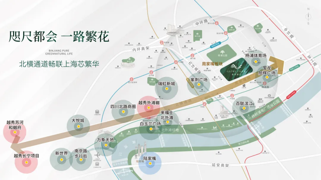 另一个方面,凭借着上海的东西向大动脉—北横通道,【翎翠滨江】在享受沿线一系列超级配套的同时,也将获得由这一主干道所带来的清晰上下游人口导入!
