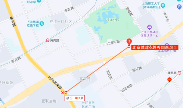 项目北面,即是始建于1958年、素有“沪上小西湖”美誉的杨浦公园(直线距离约400米)。一面滨江,一面公园,“双生态”的奢侈配置,为日常提供了漫步、休憩的绿色客厅。;12号线隆昌路站、8号线黄兴路站双轨环绕,从容切换全城目的地;周边高密度的优质教育、医疗资源(如控二小学、杨浦中心医院、新华医院等),构筑起坚实的生活保障。