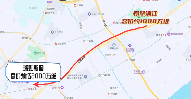 举个例子,从项目出发,沿着北横通道,驾车约12分钟即可达瑞虹新城!12分钟车程,价差约1000万!相对于瑞虹金茂地块,【翎翠滨江】无疑是邮电新村、临平路、江浦路一带改善客群更高性价比的选择!