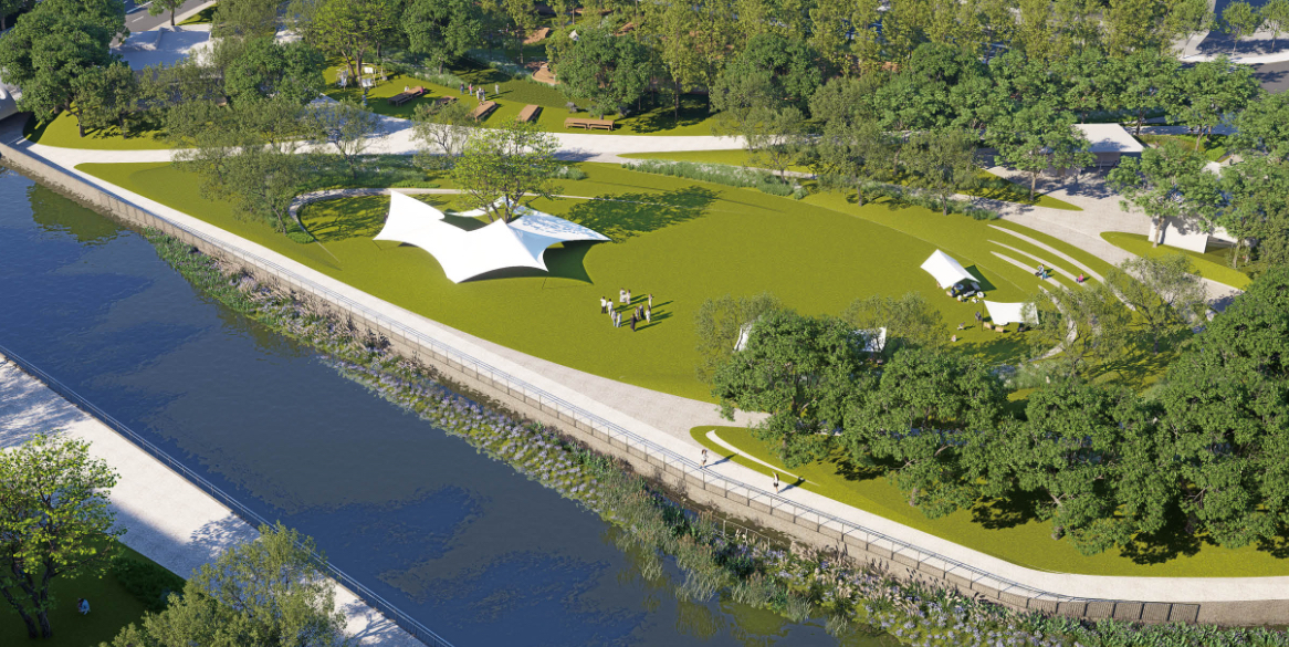 而今,经过十余年的不懈努力,规划正加速变为现实。规划图上的公园、产业地标、人居社区悉数兑现,人们被一种前所未有的“整体感”所触动。这里没有那种常见楼盘与周遭环境格格不入的疏离与孤傲。建筑、景观、街角,乃至与市政道路的衔接处,都处理得流畅而浑然一体。景观不再是围墙内孤芳自赏的陈列,而是像绿意自然蔓延一般,渗透到街区的边界。几个精心打造的街角花园主动退让出来,成为路人也可驻足歇息的“口袋公园”。这种打开与共享的姿态,清晰地表明:营造者思考的起点,早已超越了数百户家庭的围墙,而是这一整片街区未来的面容与呼吸。